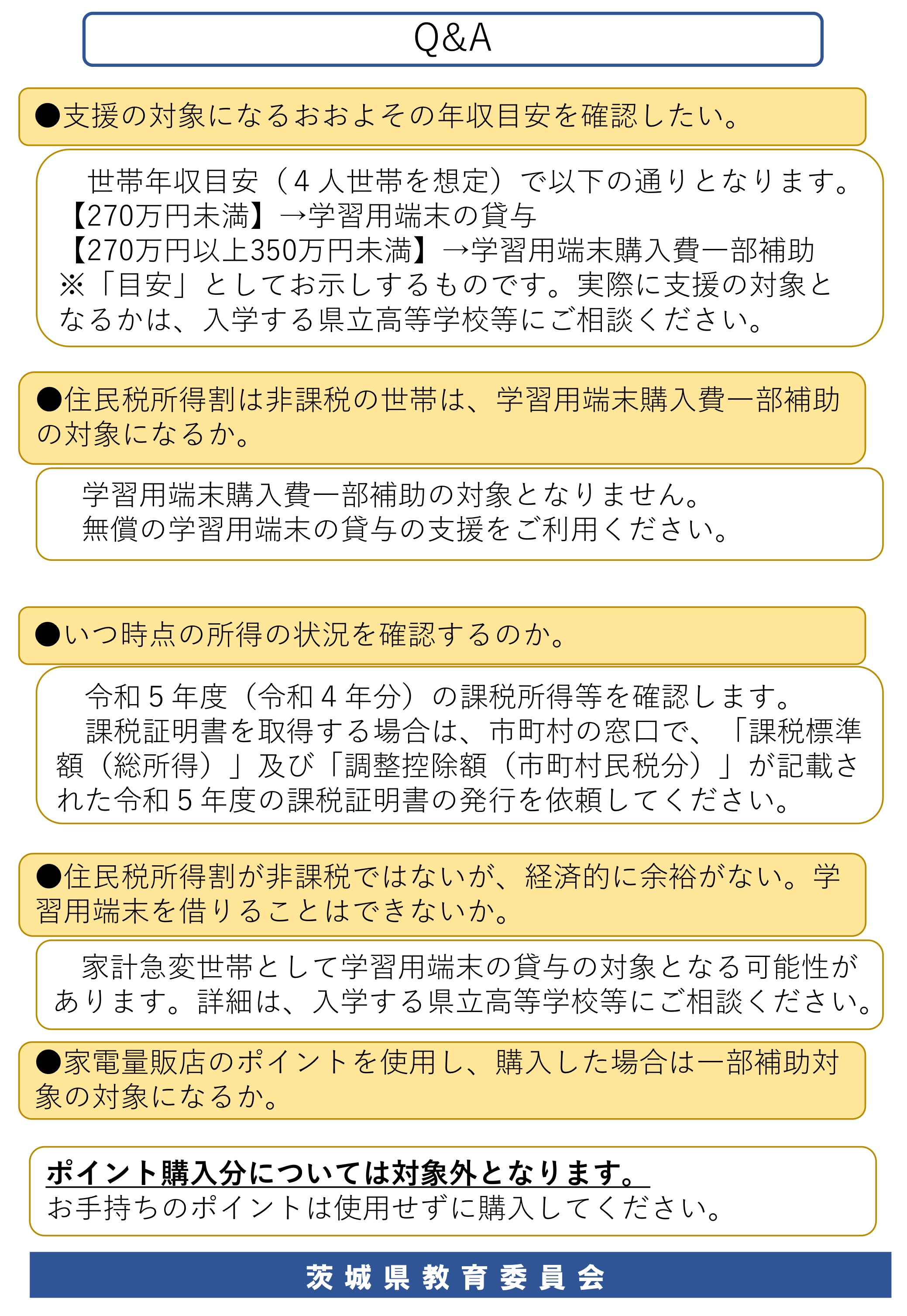 「学習用端末貸付・一部補助について」を掲載いたします。